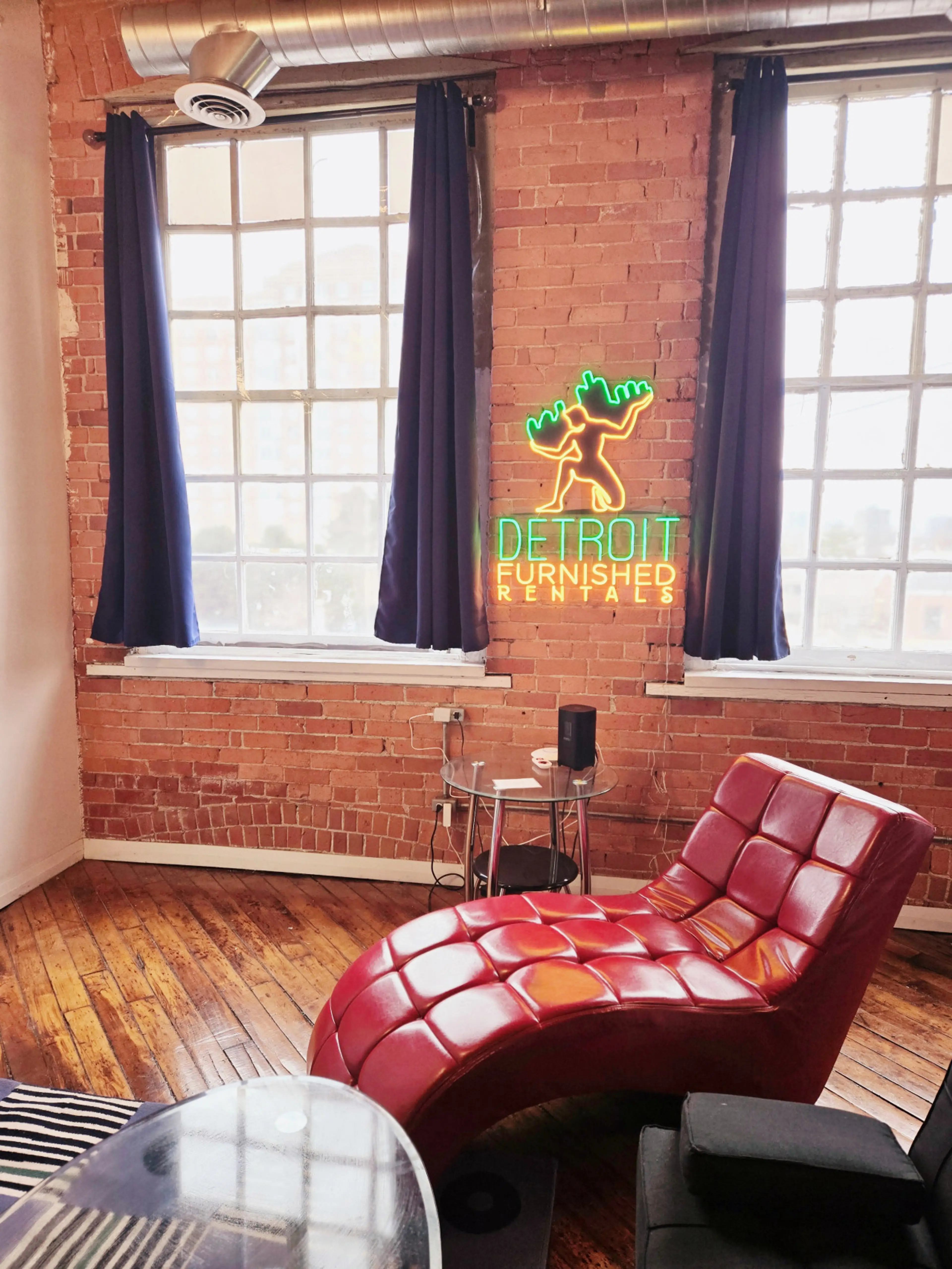 Detroit Harbor Loft Welcome to the Detroit Harbor Loft, a premier riverfront space perfect for traveling nurses, airline personnel, and professionals. This beautifully renovated loft features a full kitchen, bathroom, large closet, and an open floor plan that includes a living room, dining area, and...